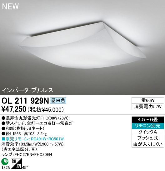 ODELIC ¥ª¡¼¥Ç¥ê¥Ã¥¯ ¥·¡¼¥ê¥ó¥°¥é¥¤¥È OL211929N