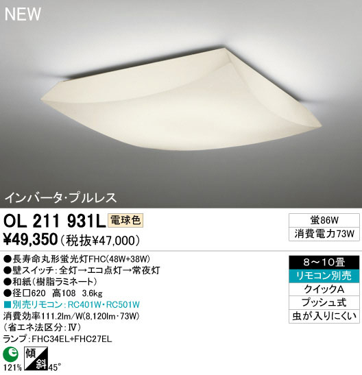 ODELIC ¥ª¡¼¥Ç¥ê¥Ã¥¯ ¥·¡¼¥ê¥ó¥°¥é¥¤¥È OL211931L
