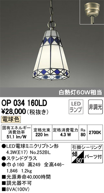 ODELIC ¥ª¡¼¥Ç¥ê¥Ã¥¯ ¥Ú¥ó¥À¥ó¥È¥é¥¤¥È OP034160LD