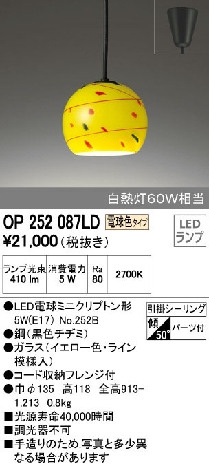 ODELIC ¥ª¡¼¥Ç¥ê¥Ã¥¯ ¥Ú¥ó¥À¥ó¥È¥é¥¤¥È OP252087LD