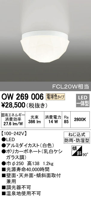 ODELIC ¥ª¡¼¥Ç¥ê¥Ã¥¯ ¥¨¥¯¥¹¥Æ¥ê¥¢¥é¥¤¥È OW269006