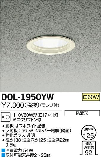 DAIKO Âç¸÷Åŵ¡ ¸®²¼¥À¥¦¥ó¥é¥¤¥È ¥¢¥¦¥È¥É¥¢ DOL-1950YB/YW