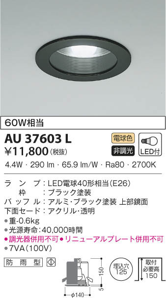 KOIZUMI ¥³¥¤¥º¥ß¾ÈÌÀ £Í·Á¥À¥¦¥ó¥é¥¤¥È AU37603L