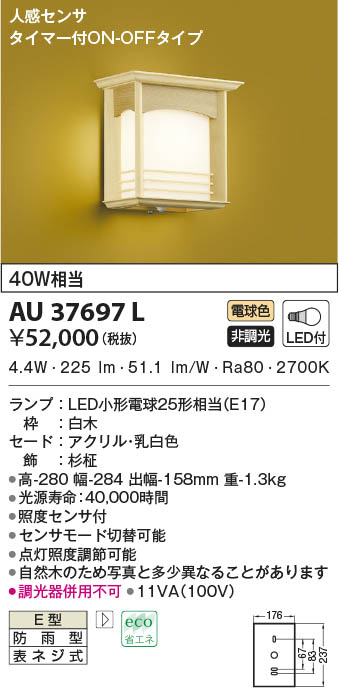 KOIZUMI ¥³¥¤¥º¥ß¾ÈÌÀ Ëɱ«·¿¥Ö¥é¥±¥Ã¥È AU37697L