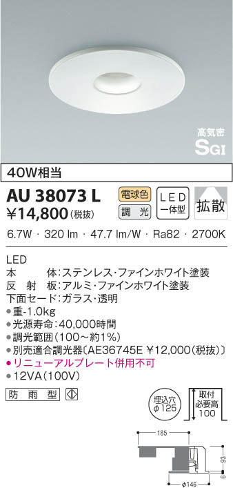 KOIZUMI ¥³¥¤¥º¥ß¾ÈÌÀ Ëɱ«·¿¥À¥¦¥ó¥é¥¤¥È AU38073L