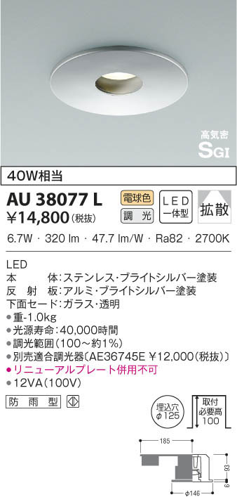 KOIZUMI ¥³¥¤¥º¥ß¾ÈÌÀ Ëɱ«·¿¥À¥¦¥ó¥é¥¤¥È AU38077L
