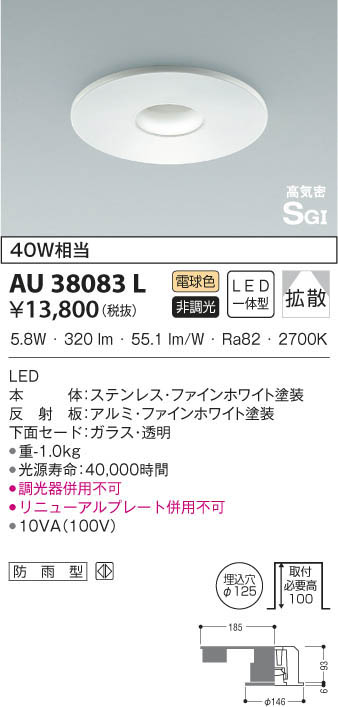 KOIZUMI ¥³¥¤¥º¥ß¾ÈÌÀ Ëɱ«·¿¥À¥¦¥ó¥é¥¤¥È AU38083L