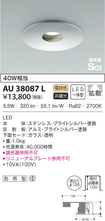 KOIZUMI ¥³¥¤¥º¥ß¾ÈÌÀ Ëɱ«·¿¥À¥¦¥ó¥é¥¤¥È AU38087L