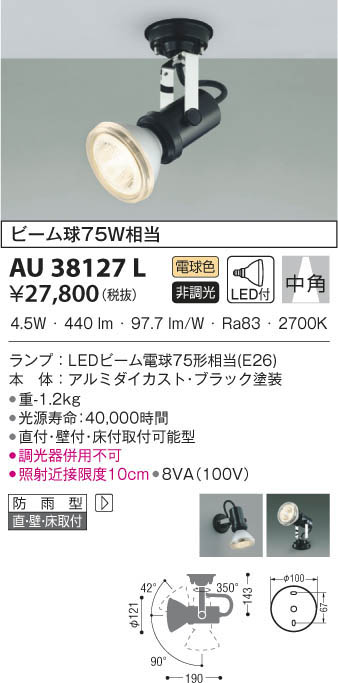 KOIZUMI ¥³¥¤¥º¥ß¾ÈÌÀ ¥¨¥¯¥¹¥Æ¥ê¥¢¥¹¥Ý¥Ã¥È¥é¥¤¥È AU38127L