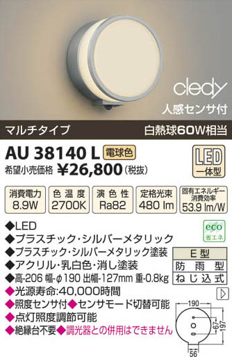 ¥³¥¤¥º¥ß¾ÈÌÀ KOIZUMI LEDËɱ«·¿¥Ö¥é¥±¥Ã¥È AU38140L