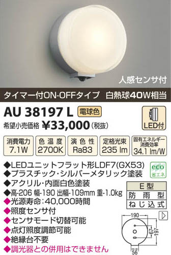 ¥³¥¤¥º¥ß¾ÈÌÀ KOIZUMI LEDËɱ«·¿¥Ö¥é¥±¥Ã¥È AU38197L