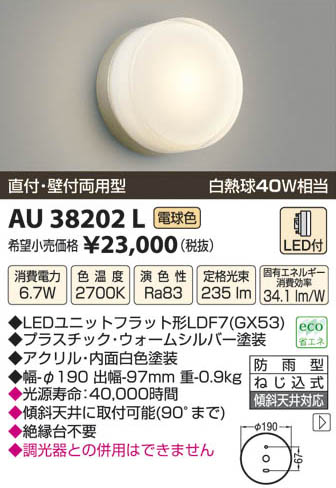 ¥³¥¤¥º¥ß¾ÈÌÀ KOIZUMI LEDËɱ«·¿¥Ö¥é¥±¥Ã¥È AU38202L