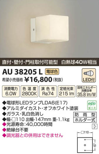 ¥³¥¤¥º¥ß¾ÈÌÀ KOIZUMI LEDËɱ«·¿¥Ö¥é¥±¥Ã¥È AU38205L