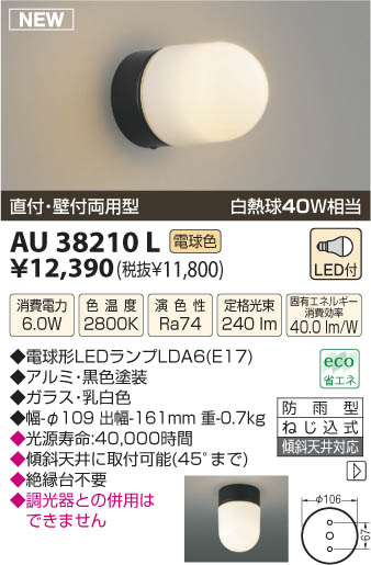 ¥³¥¤¥º¥ß¾ÈÌÀ KOIZUMI LEDËɱ«·¿¥Ö¥é¥±¥Ã¥È AU38210L