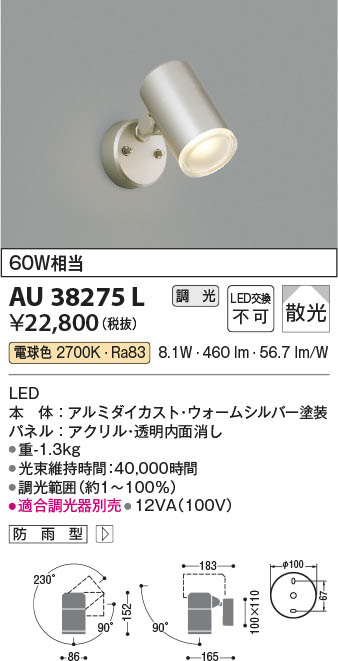 Koizumi ¥³¥¤¥º¥ß¾ÈÌÀ LED¥¨¥¯¥¹¥Æ¥ê¥¢¥¹¥Ý¥Ã¥È¥é¥¤¥È AU38275L