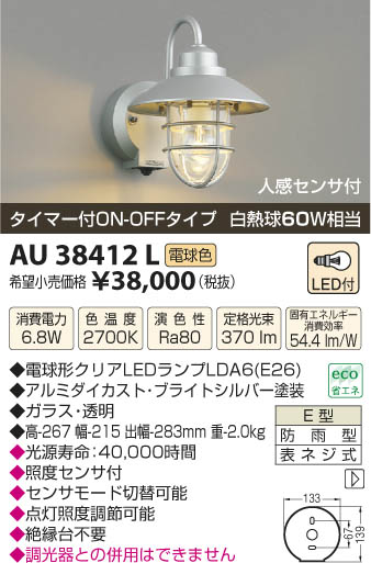 ¥³¥¤¥º¥ß¾ÈÌÀ KOIZUMI Ëɱ«·¿¥Ö¥é¥±¥Ã¥È LED AU38412L