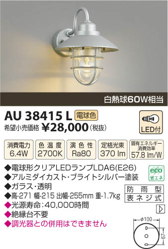 ¥³¥¤¥º¥ß¾ÈÌÀ KOIZUMI Ëɱ«·¿¥Ö¥é¥±¥Ã¥È LED AU38415L