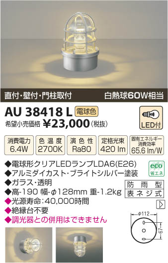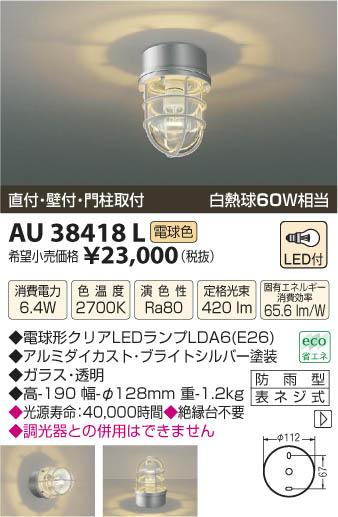 ¥³¥¤¥º¥ß¾ÈÌÀ KOIZUMI Ëɱ«·¿¥·¡¼¥ê¥ó¥° LED AU38418L