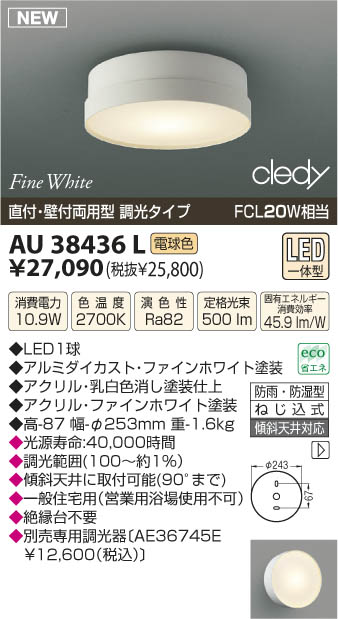 ¥³¥¤¥º¥ß¾ÈÌÀ KOIZUMI LEDËɱ«Ëɼ¾·¿¥·¡¼¥ê¥ó¥° AU38436L