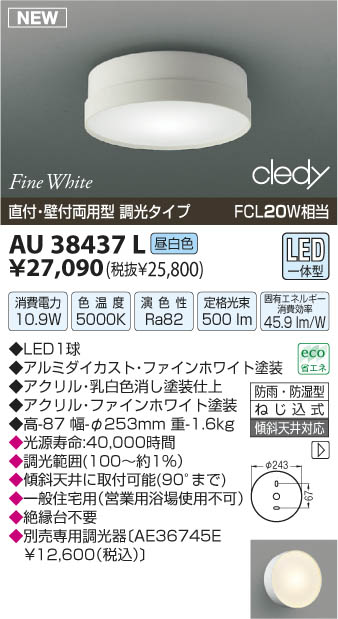 ¥³¥¤¥º¥ß¾ÈÌÀ KOIZUMI LEDËɱ«Ëɼ¾·¿¥·¡¼¥ê¥ó¥° AU38437L