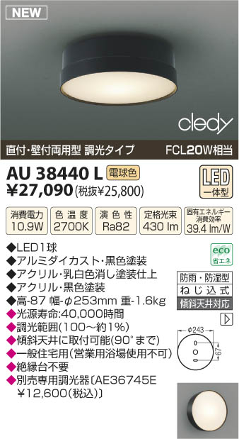 ¥³¥¤¥º¥ß¾ÈÌÀ KOIZUMI LEDËɱ«Ëɼ¾·¿¥·¡¼¥ê¥ó¥° AU38440L