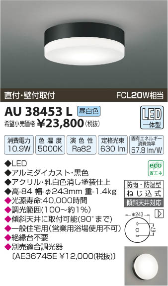 ¥³¥¤¥º¥ß¾ÈÌÀ KOIZUMI Ëɱ«Ëɼ¾·¿¥·¡¼¥ê¥ó¥° LED AU38453L