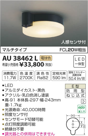 ¥³¥¤¥º¥ß¾ÈÌÀ KOIZUMI Ëɱ«·¿¥·¡¼¥ê¥ó¥° LED¡ÊÅŵ忧¡Ë AU38462L