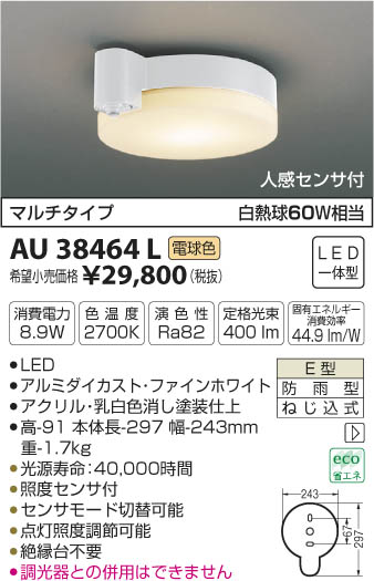 ¥³¥¤¥º¥ß¾ÈÌÀ KOIZUMI Ëɱ«·¿¥·¡¼¥ê¥ó¥° LED¡ÊÅŵ忧¡Ë AU38464L