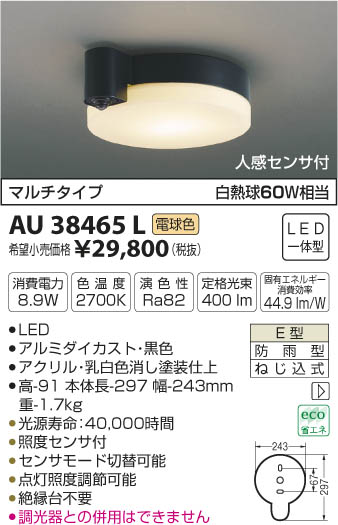 ¥³¥¤¥º¥ß¾ÈÌÀ KOIZUMI Ëɱ«·¿¥·¡¼¥ê¥ó¥° LED¡ÊÅŵ忧¡Ë AU38465L