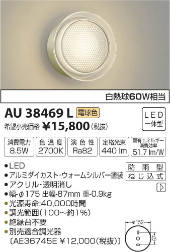 ¥³¥¤¥º¥ß¾ÈÌÀ KOIZUMI Ëɱ«·¿¥Ö¥é¥±¥Ã¥È LED¡ÊÅŵ忧¡Ë AU38469L