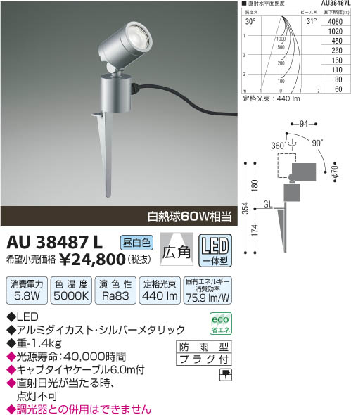 ¥³¥¤¥º¥ß¾ÈÌÀ KOIZUMI ¥¢¥¦¥È¥É¥¢¥¹¥Ñ¥¤¥¯¥¹¥Ý¥Ã¥È LED AU38487L