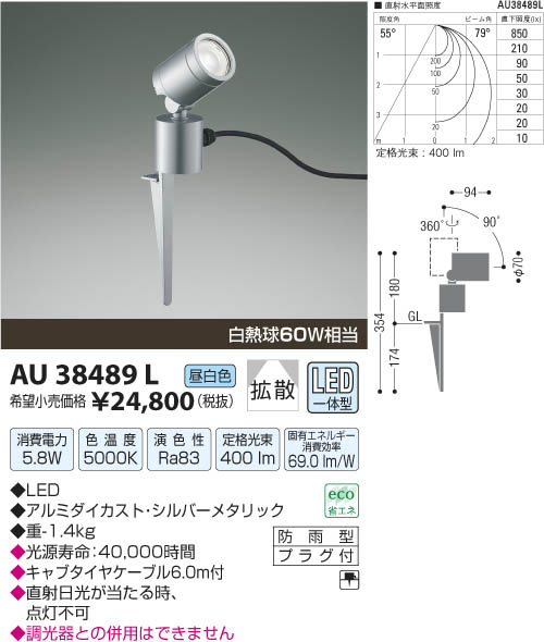 ¥³¥¤¥º¥ß¾ÈÌÀ KOIZUMI ¥¢¥¦¥È¥É¥¢¥¹¥Ñ¥¤¥¯¥¹¥Ý¥Ã¥È LED AU38489L