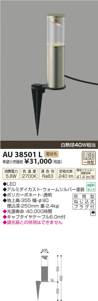 ¥³¥¤¥º¥ß¾ÈÌÀ KOIZUMI ¥¬¡¼¥Ç¥ó¥é¥¤¥È LED AU38501L
