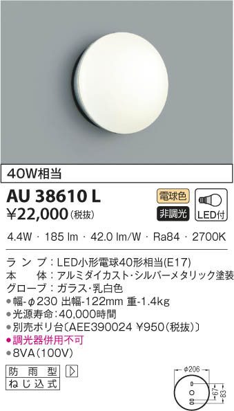 KOIZUMI ¥³¥¤¥º¥ß¾ÈÌÀ Ëɱ«·¿¥Ö¥é¥±¥Ã¥È AU38610L