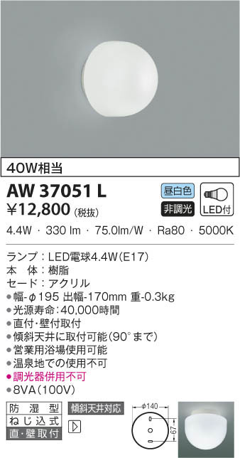 KOIZUMI ¥³¥¤¥º¥ß¾ÈÌÀ Ëɼ¾·¿¥Ö¥é¥±¥Ã¥È AW37051L
