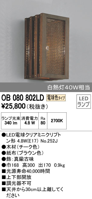 ODELIC ¥ª¡¼¥Ç¥ê¥Ã¥¯ ¥Ö¥é¥±¥Ã¥È OB080802LD