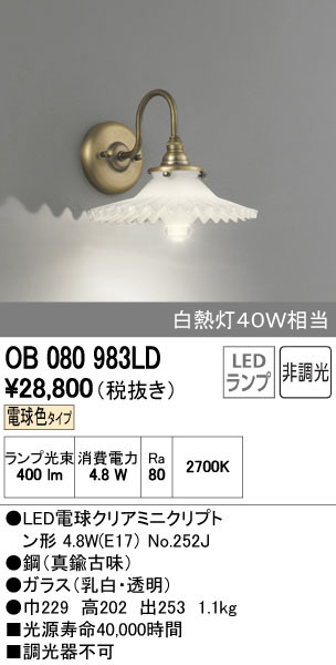 ODELIC ¥ª¡¼¥Ç¥ê¥Ã¥¯ ¥Ö¥é¥±¥Ã¥È OB080983LD