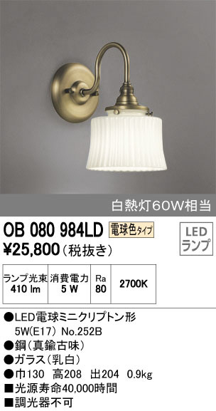 ODELIC ¥ª¡¼¥Ç¥ê¥Ã¥¯ ¥Ö¥é¥±¥Ã¥È OB080984LD