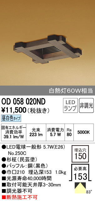 ODELIC ¥ª¡¼¥Ç¥ê¥Ã¥¯ ¥À¥¦¥ó¥é¥¤¥È OD058020ND