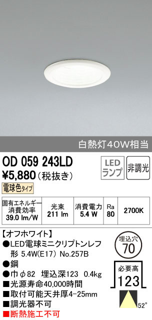 ODELIC ¥ª¡¼¥Ç¥ê¥Ã¥¯ ¥À¥¦¥ó¥é¥¤¥È OD059243LD