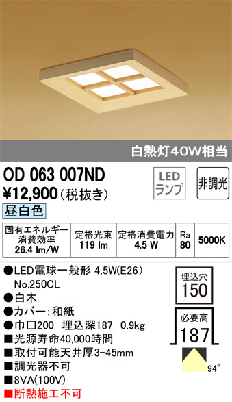 ODELIC ¥ª¡¼¥Ç¥ê¥Ã¥¯ ¥À¥¦¥ó¥é¥¤¥È OD063007ND