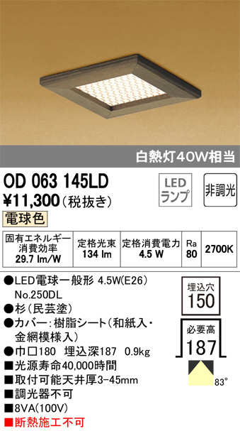 ODELIC ¥ª¡¼¥Ç¥ê¥Ã¥¯ ¥À¥¦¥ó¥é¥¤¥È OD063145LD