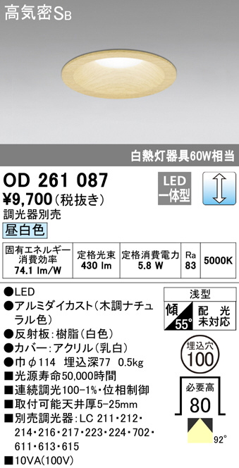 ODELIC ¥ª¡¼¥Ç¥ê¥Ã¥¯ ¥À¥¦¥ó¥é¥¤¥È OD261087