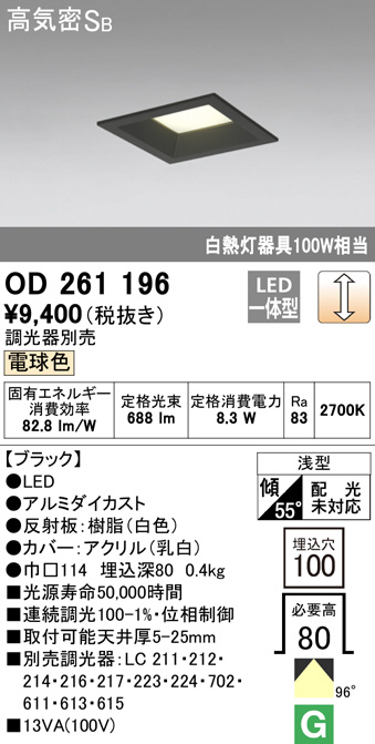 ODELIC ¥ª¡¼¥Ç¥ê¥Ã¥¯ ¥À¥¦¥ó¥é¥¤¥È OD261196