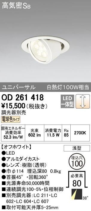 ODELIC ¥ª¡¼¥Ç¥ê¥Ã¥¯ ¥À¥¦¥ó¥é¥¤¥È OD261418