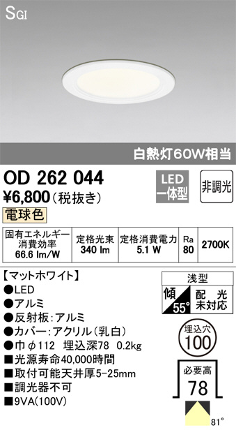ODELIC ¥ª¡¼¥Ç¥ê¥Ã¥¯ ¥À¥¦¥ó¥é¥¤¥È OD262044