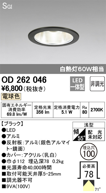 ODELIC ¥ª¡¼¥Ç¥ê¥Ã¥¯ ¥À¥¦¥ó¥é¥¤¥È OD262046