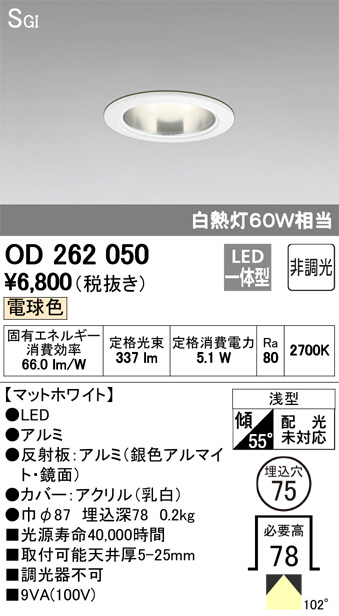 ODELIC ¥ª¡¼¥Ç¥ê¥Ã¥¯ ¥À¥¦¥ó¥é¥¤¥È OD262050