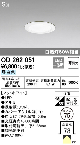 ODELIC ¥ª¡¼¥Ç¥ê¥Ã¥¯ ¥À¥¦¥ó¥é¥¤¥È OD262051