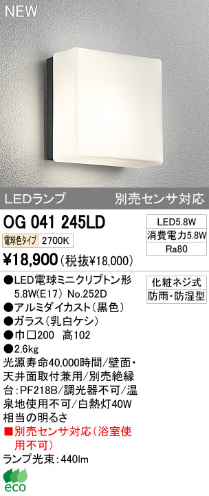 ODELIC ¥ª¡¼¥Ç¥ê¥Ã¥¯ LED¥¢¥¦¥È¥É¥¢ OG041245LD